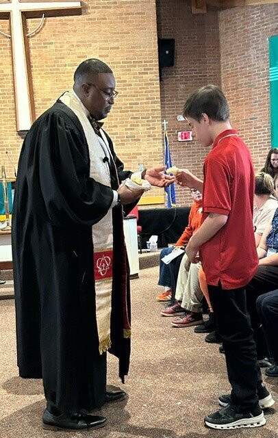 We celebrate communion at both services on the first Sunday of the month. The communion elements are served in sealed, pre-packaged containers. Guests are welcome to take communion.
